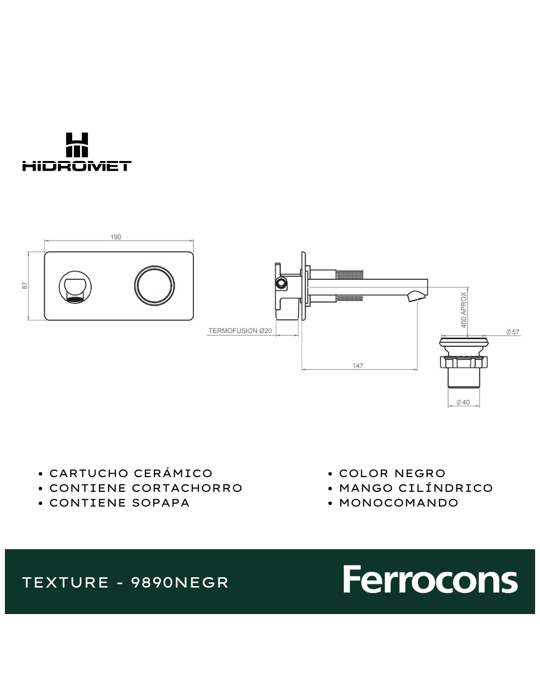 La grifería monocomando Hidromet Texture 9880NEGR redefine el estilo del baño con su acabado negro mate, un tono elegante que resalta en ambientes modernos y sofisticados. Su cartucho cerámico garantiza un funcionamiento suave, preciso y duradero, evitando filtraciones y asegurando un control exacto de temperatura y caudal.